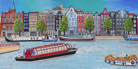 Zoals dit Amsterdamschilderij met een deel van de Brouwersgracht, de Singel en Stromarkt. Voor de eigenaren van een B&B in de Italiaanse Piemonte betekent dit terug naar 'hun' Amsterdamse roots, maar dan heel dichtbij gebracht op een Italiaanse muur in misschien wel de prachtigste B&B van Bella Italia. Kijk maar eens op https://www.eenweekjeitalie.nl