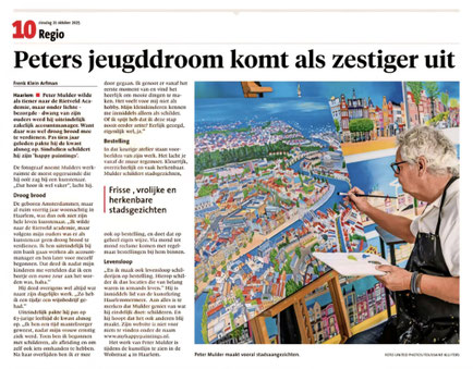 In de wintereditie van Leven! magazine vertelt opdrachtgever Amber: "de vrolijke, kleurrijke stijl van Peter spreekt mij en mijn partner enorm aan, zijn werk maakt je met recht happy! Het leek ons heel bijzonder om ons nieuwe huis op zijn manier op linnen te laten verschijnen. Het is echt een enorme aanwinst gebleken, we zijn er heel blij mee. En ook alle bezoekers van ons housewarming waren enthousiast."